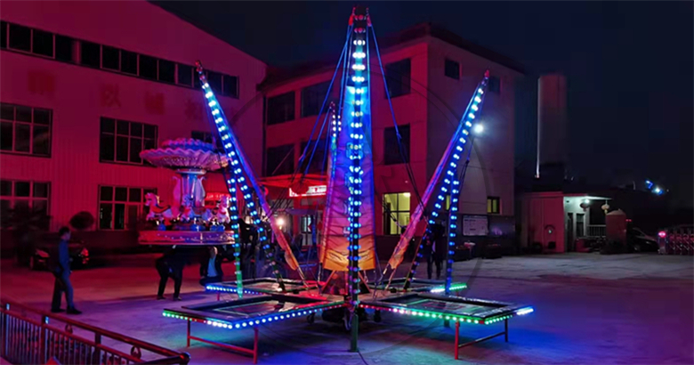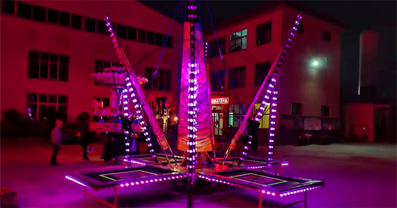 安德利新款4人發光蹦極是最近研發的蹦極當中比較流行的一款,無論是外觀,還是裝飾都比以前的更加漂亮!發光蹦極也有新的功能,可以折疊,可以移動,方便經常移動運輸,適用到景區,公園,廣場,游樂場,廟會等場所!發光四人蹦極是四人蹦極的升級版,我們在原有的蹦極基礎上增加了LED彩燈以及軟包設計,讓設備玩起來更加安全有趣。讓投資者經營起來也更加省心省力!咨詢產品電話或微信:18300709996